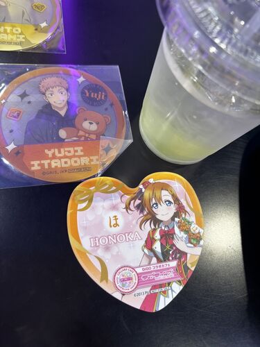 アキバGIGO3号館でドリンク飲みまして…呪術コラボもあったりμ'sもあったりで。 呪術コースターは他でもらったんだっけ?分からなくなった。 呪術とμ'sのを並べて見た笑。不釣り合い? GiGOコラボカフェ!何度目でしょう。推しのマキちゃん1年生席で歓喜! い…